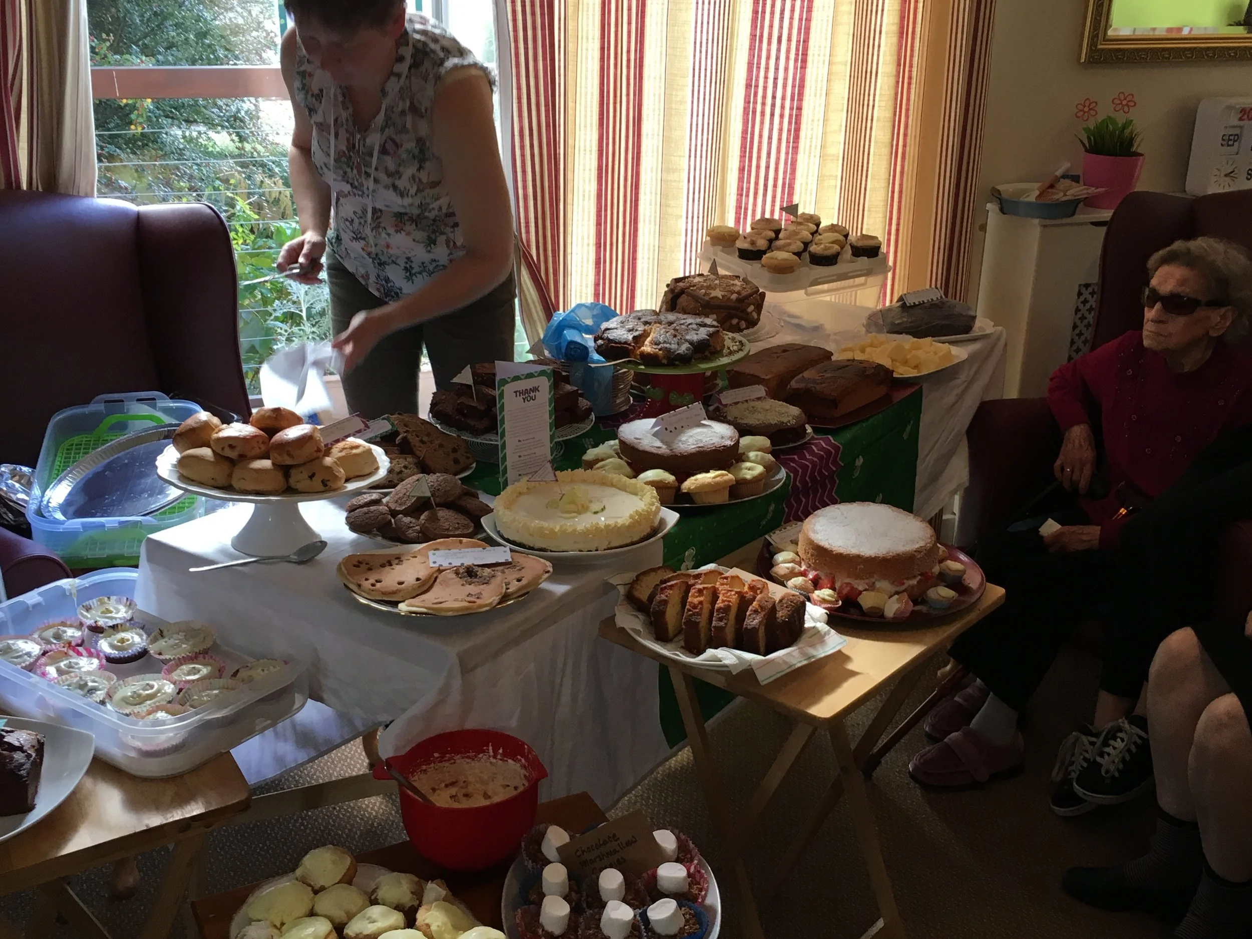 Our Macmillan Tea Party this afternoon raised a whopping £129.25. Thank you so much to family and friends who came along to support us, staff who turned out on their days off, staff on shift who helped out and, of course, everyone who baked. As you can see we had a luscious spread of goodies and the residents enjoyed the party.